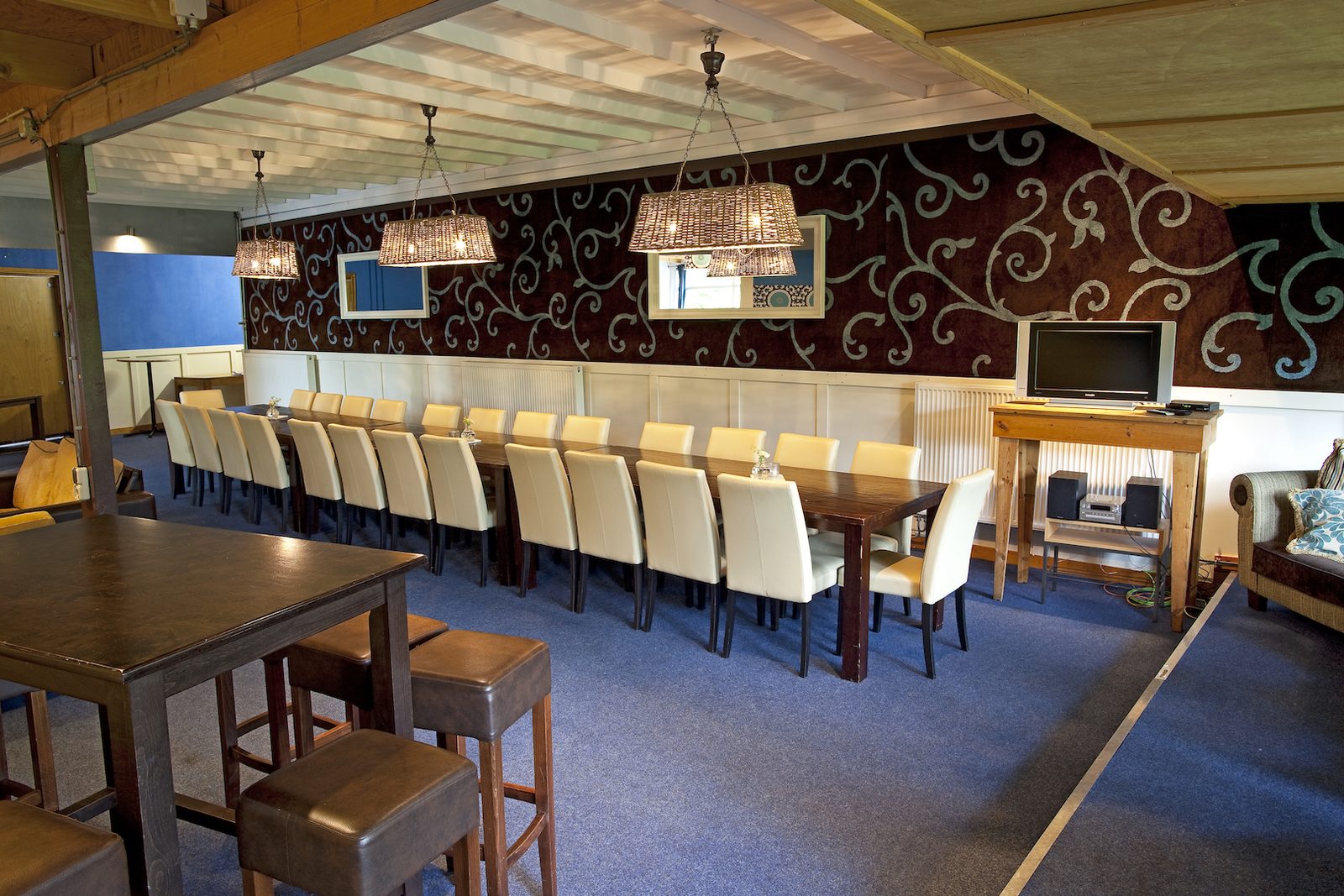 Je de kunt ook kiezen voor groepsruimte de Kapschuur. Deze zaal is perfect voor diverse soorten groepsactiviteiten, dankzij de flexibele indeling en de stoere, sfeervolle uitstraling. De combinatie van hout en metaal zorgt voor een gezellige ambiance, ideaal voor zowel zakelijke als informele gelegenheden.