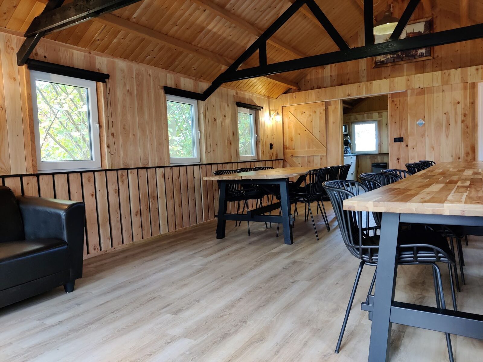 Willen jullie als groep samenkomen? Dan ontmoet je elkaar in de gezellige groepsblokhut. Hier kunnen jullie samen eten, spelletjes spelen of vergaderen.