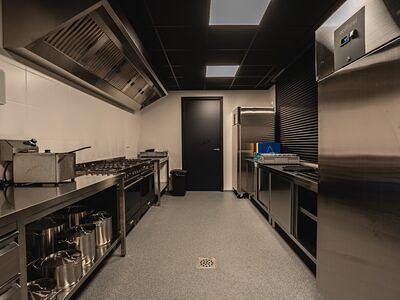 Groepsverblijf De Stal is een ruime groepszaal met grote stamtafels, zithoeken en openslaande tuindeuren naar het grasveld. Een professioneel ingerichte keuken heeft een 5-pits gasstel, snelle vaatwasser, grote potten en pannen en voldoende serviesgoed. Het privéterras biedt directe toegang tot een speelveld, ideaal voor buitenactiviteiten of ontspanning na een zakelijke bijeenkomst.